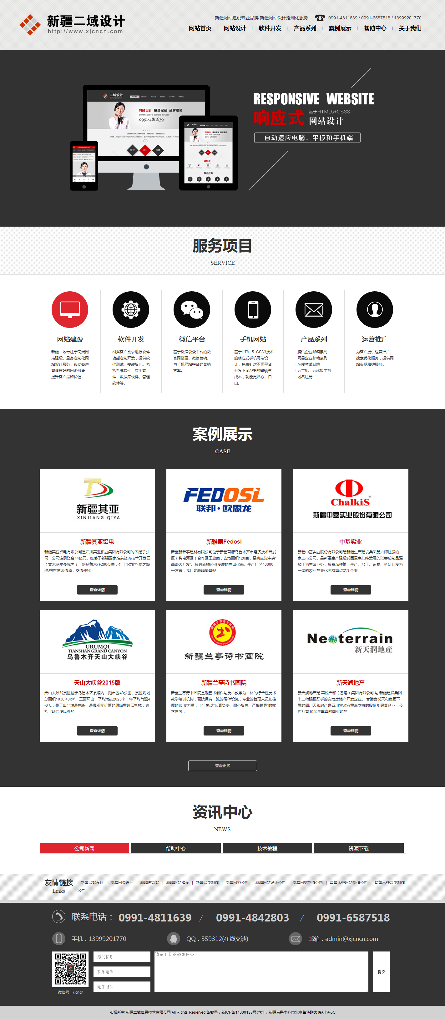 2016年新年到來的時(shí)候,歷經(jīng)多個(gè)版本修改的新疆二域設(shè)計(jì)官網(wǎng)終于發(fā)布新版了!本次改版采用紅與黑色調(diào),扁平化風(fēng)格,前端采用HTML5和CSS3響應(yīng)式布局,自動(dòng)適應(yīng)平板和手機(jī)屏幕瀏覽,以滿足移動(dòng)互聯(lián)網(wǎng)時(shí)代發(fā)展的要求。